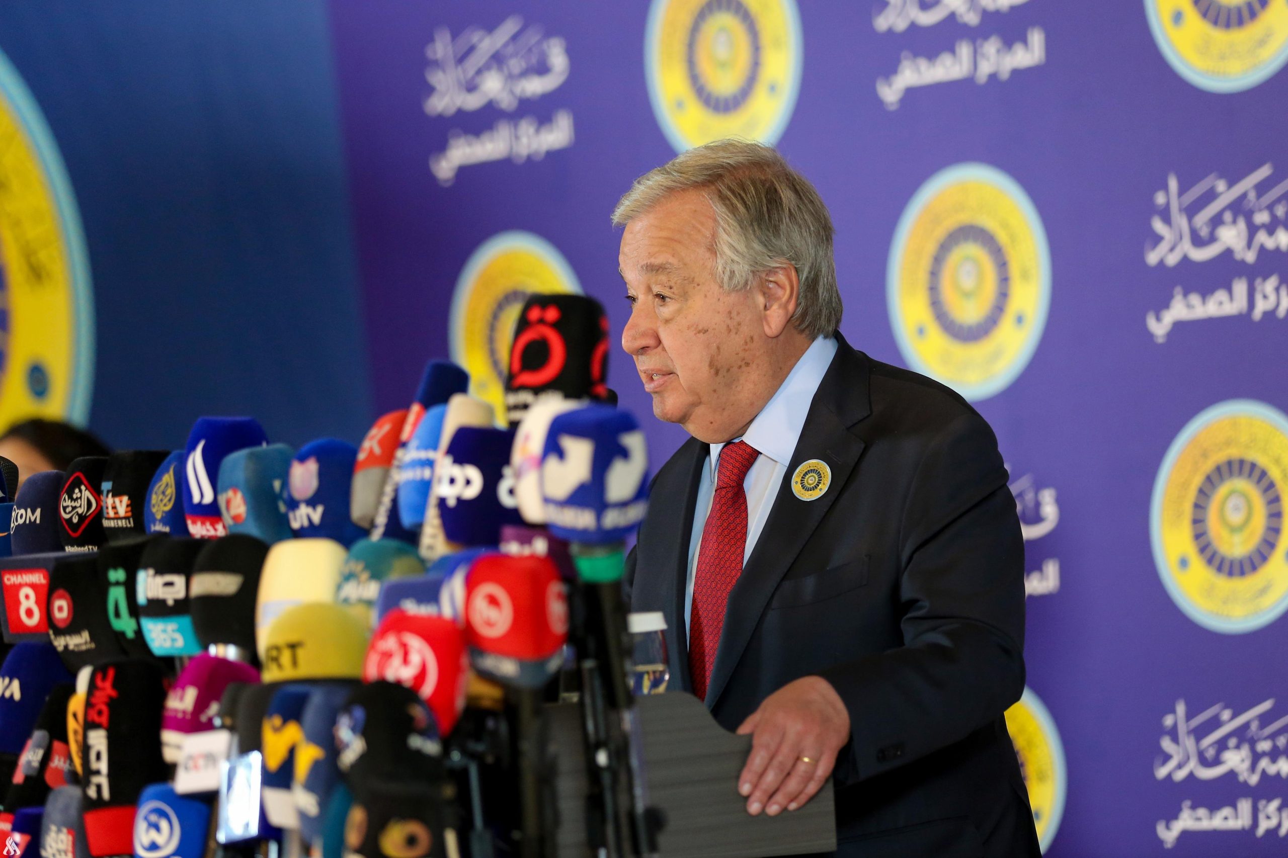 وقال غوتيريش في مؤتمر صحفي عقده على هامش القمة العربية المنعقدة في بغداد “يسعدني أن أكون في بغداد مجددًا للمشاركة في قمة جامعة الدول العربية، في لحظة حاسمة تمر بها منطقة الشرق الأوسط”، مبينًا، أن “الأرض تتحرك تحت أقدامنا، لكن هذه التحولات الجذرية ليست قوى طبيعية، بل نتائج لخيارات محددة، والحلول بيد صانعي القرار”.